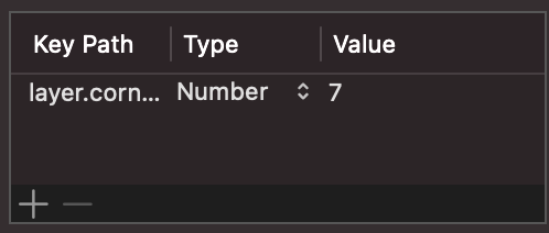 그리고 아래처럼 Key Path : layer.cornerRadius, Type : Number, Value : 7을 입력해줍니다.