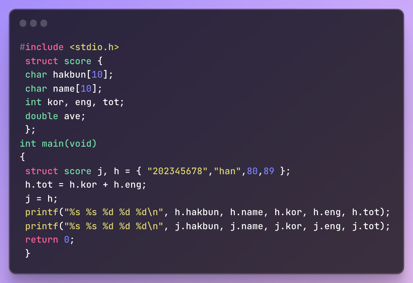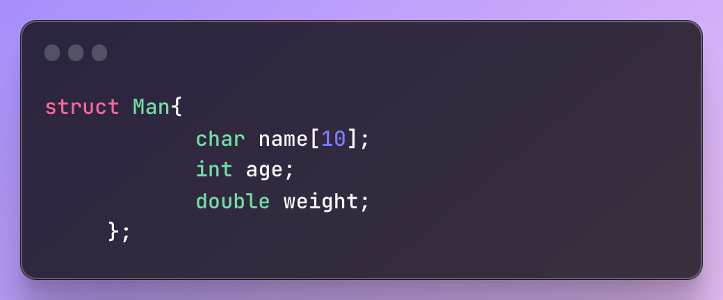 구조체는 다른 형(type)의 데이터들을 하나의 단위로 취급한다. 예를 들어 프로그램을 만들 때 이름과 나이와 몸무게를 사용하게 된다면 이 3가지를 따로따로 사용하는 것보단 일반적으로는 다 같이 사용하는 경우가 많기 때문에 하나의 묶음으로 만들어서 사용한다