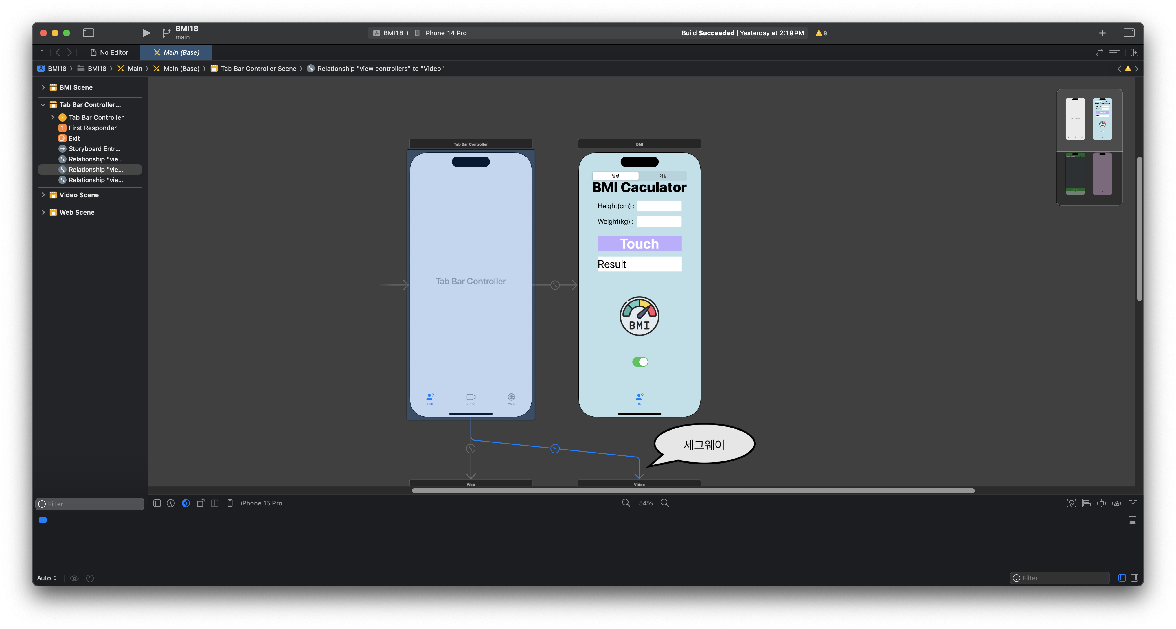 View Controller와 Tab Bar Controller 연결