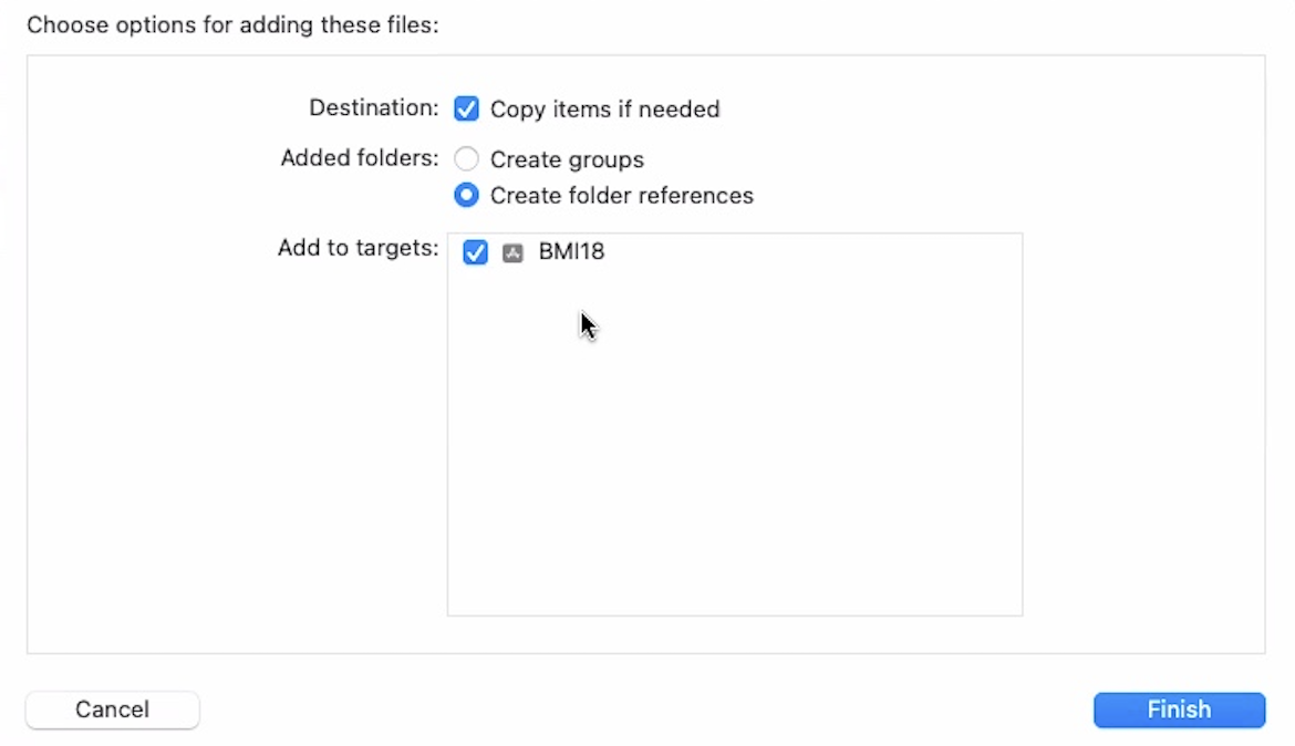 Destination과 Add to targets를 체크하고 Finish 버튼을 눌러줍니다.