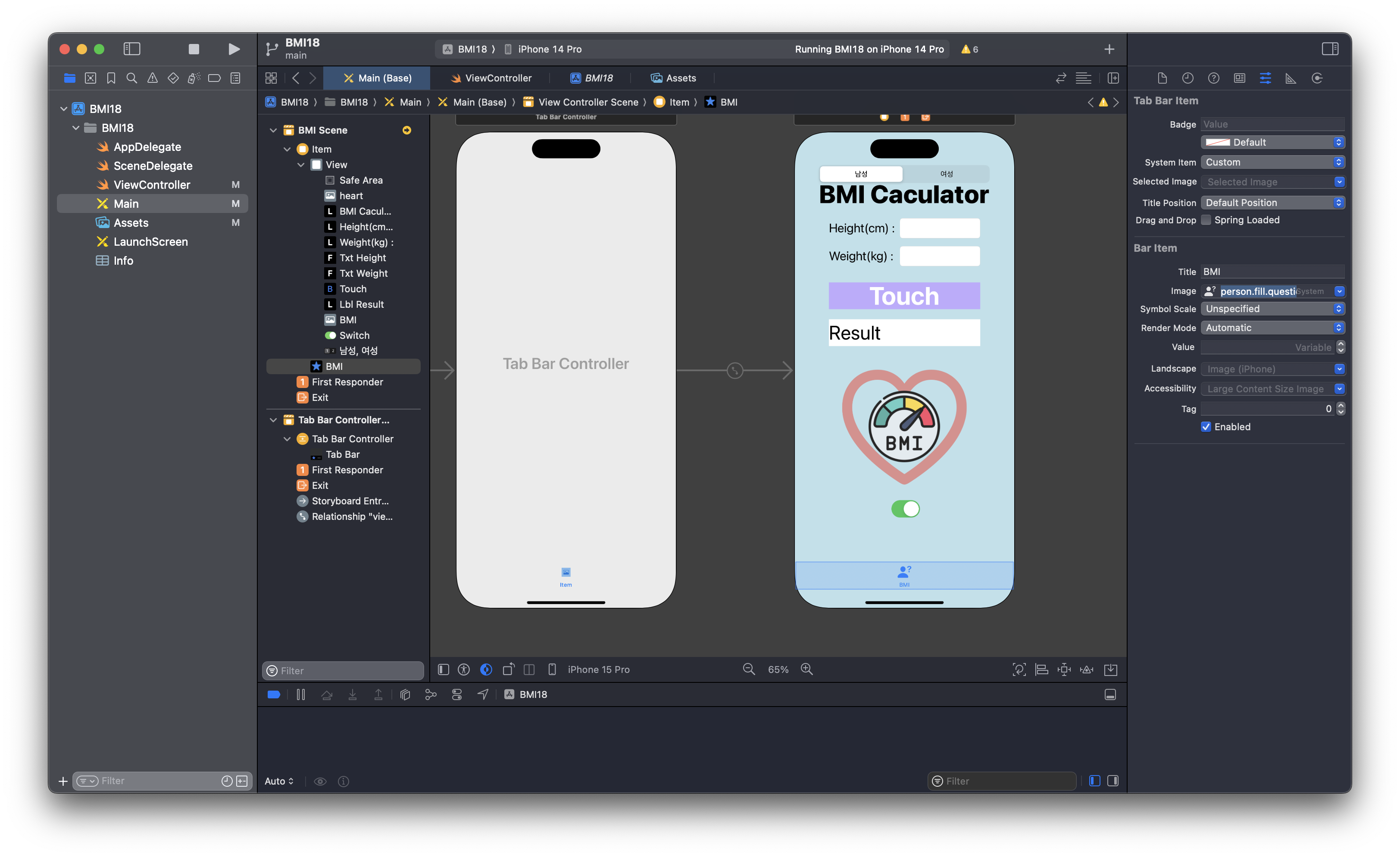 각 탭에 대한 아이콘과 제목은 'Tab Bar Item'의 Attributes Inspector에서 설정할 수 있습니다.