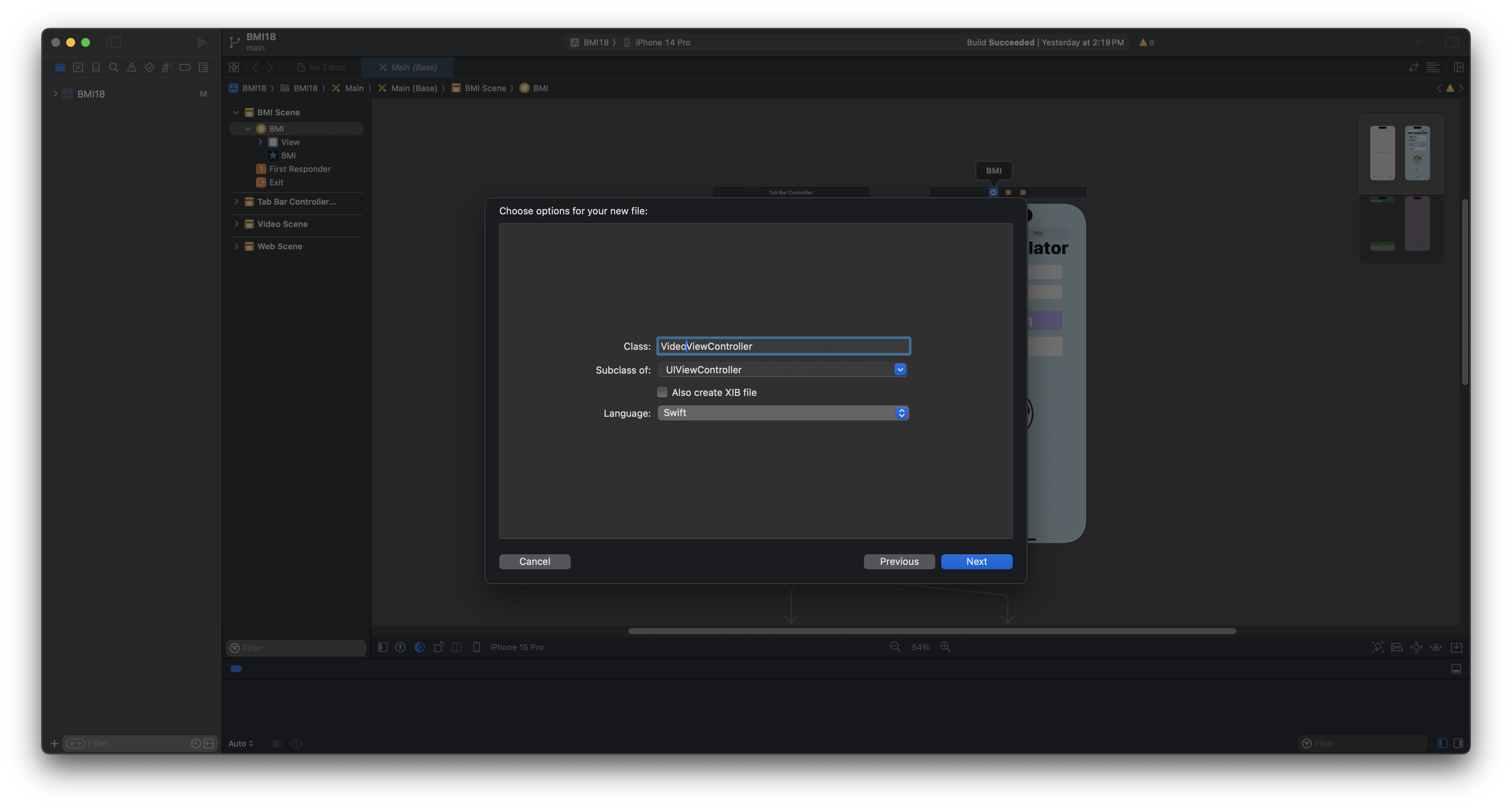 부모 클래스의 이름을 VideoViewController로 짓고 Next버튼을 누르고 Create를 눌러서 생성해주면 됩니다.