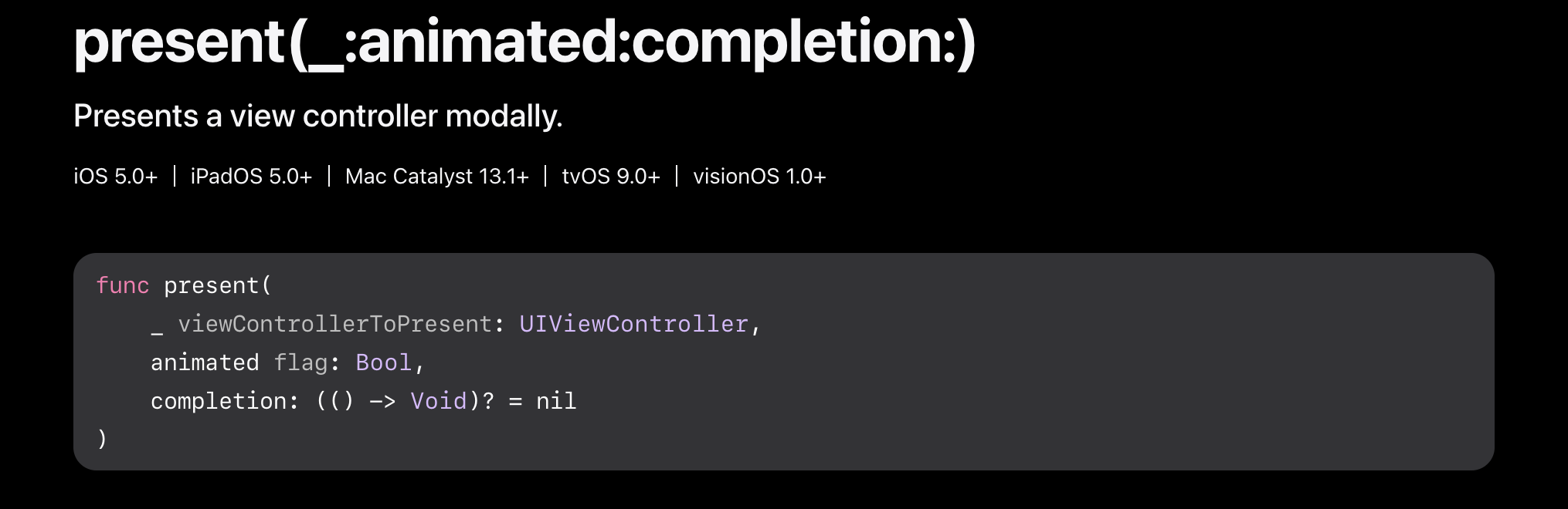 https://developer.apple.com/documentation/uikit/uiviewcontroller/1621380-present