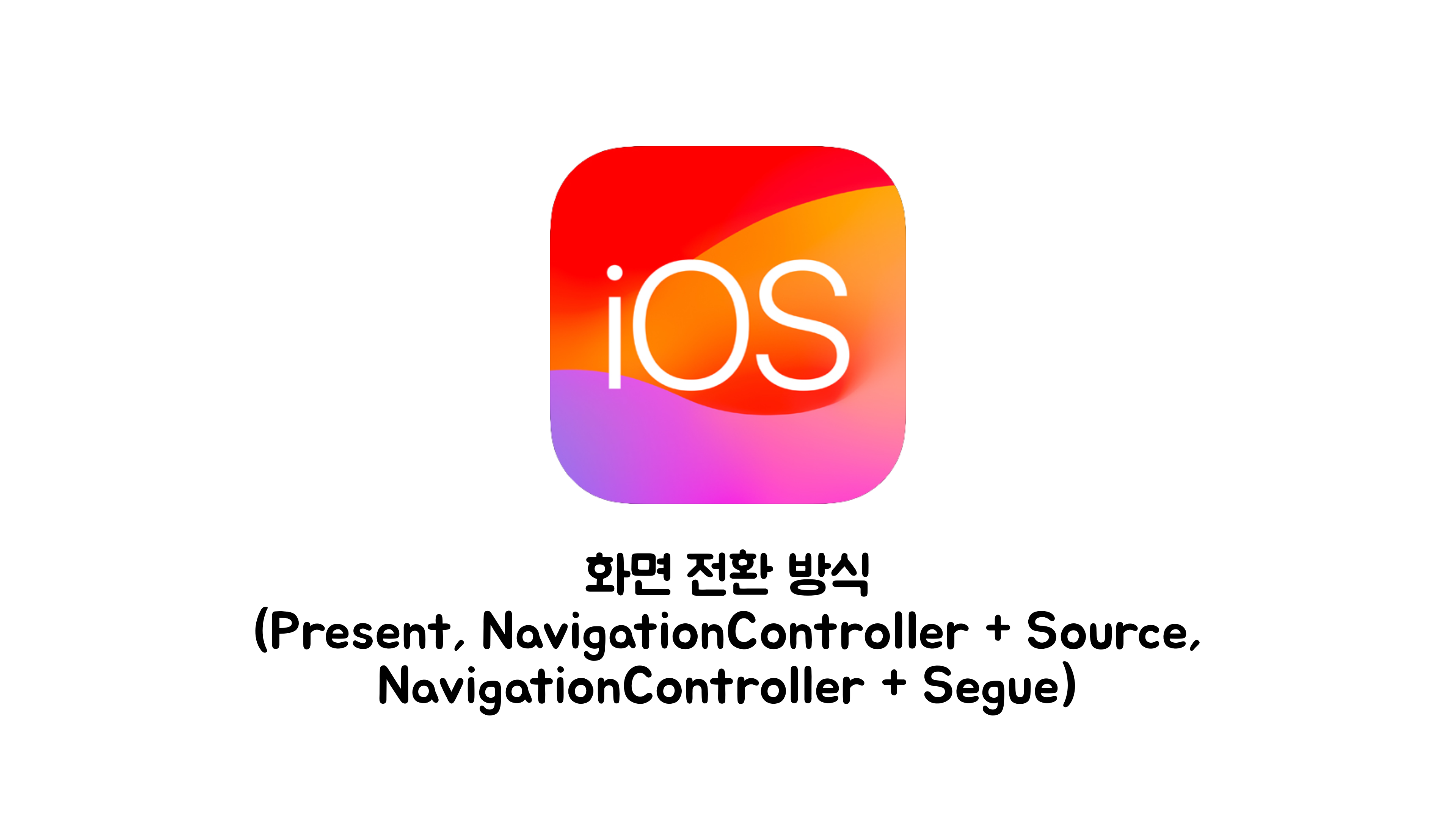 iOS 개발에서 대표적인 화면 전환 방식에는 present 방식, 네비게이션 컨트롤러 + 소스(push), 그리고 네비게이션 컨트롤러 + Segue가 있습니다.