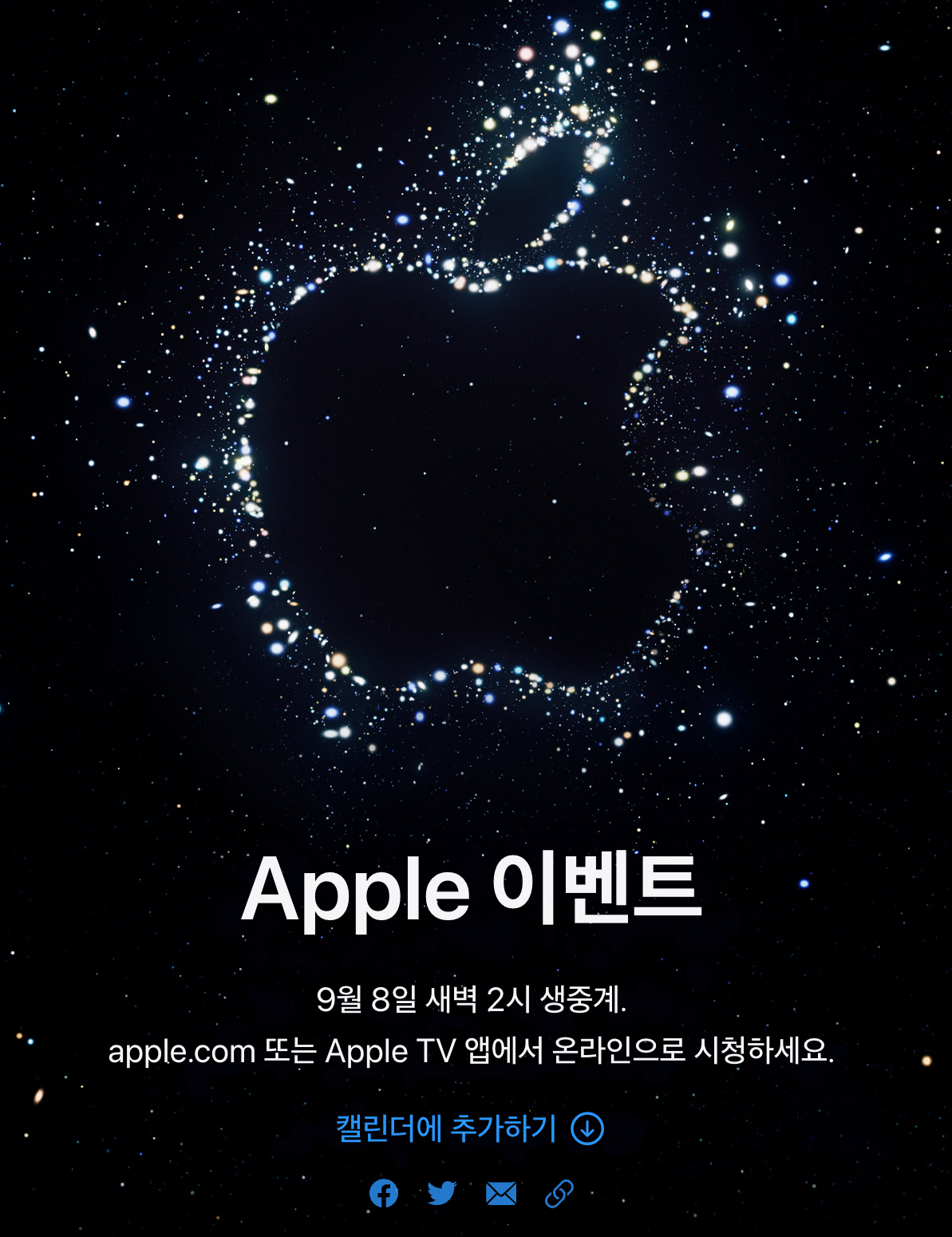 애플이 한국시각으로 2022년 9월 8일 새벽 2시에 Apple 이벤트 생중계를 진행한다는 초대장을 발표했습니다.