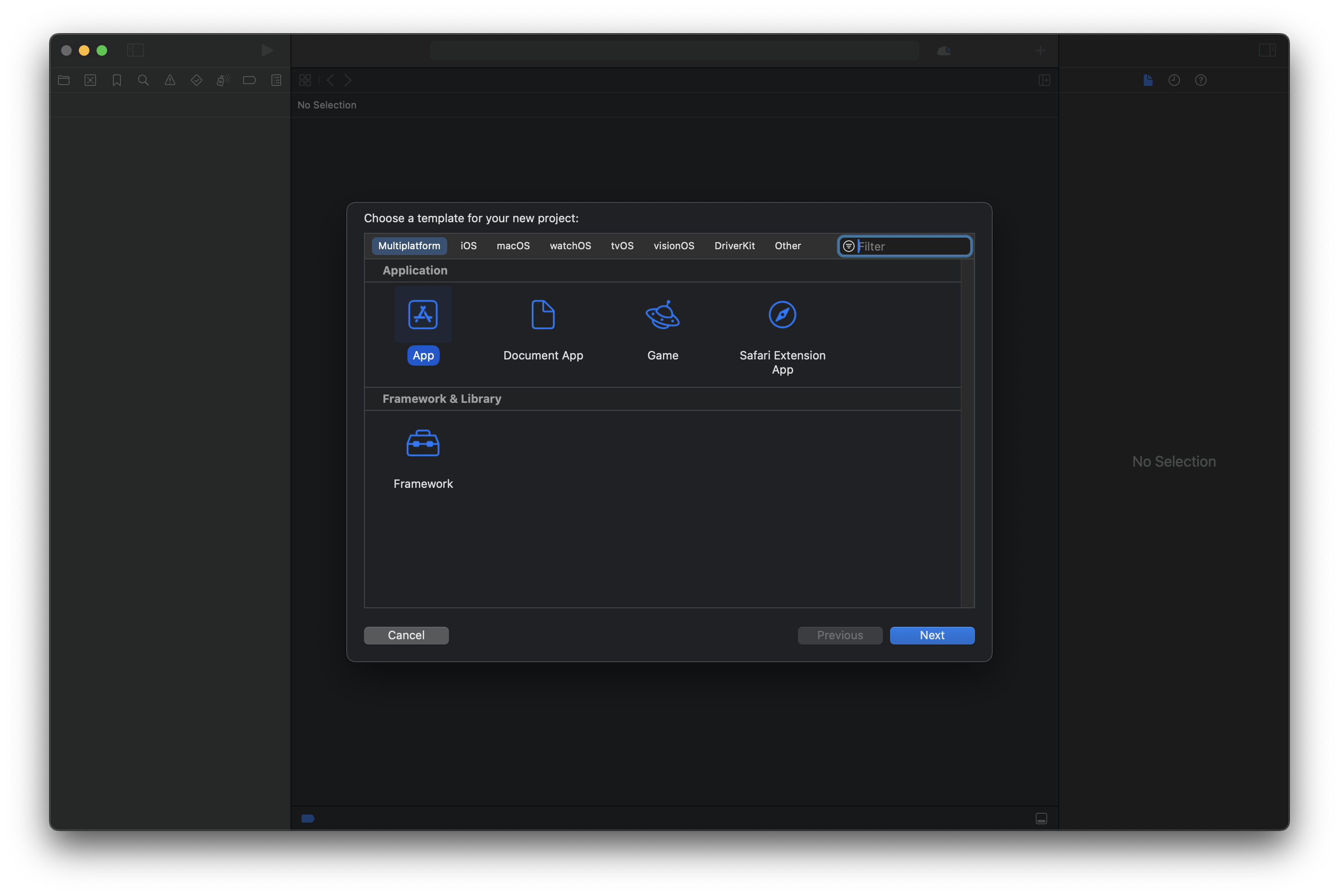 우선 Xcode를 실행하고 새로운 프로젝트를 생성하는 옵션을 선택한 후, Multiplatform App을 선택해주겠습니다.