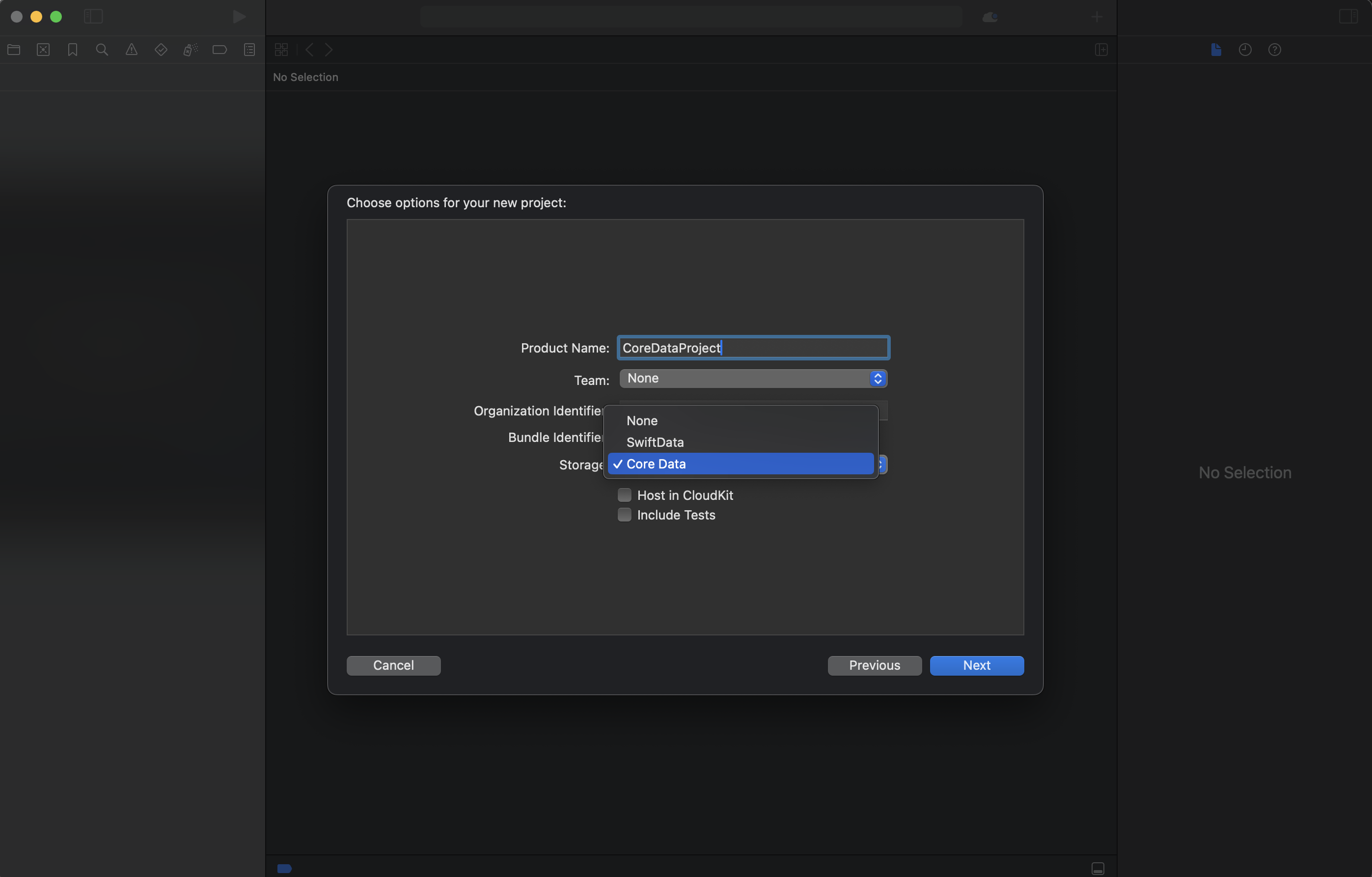 그리고 Storage 부분에서 Core Data로 선택을 해주겠습니다.