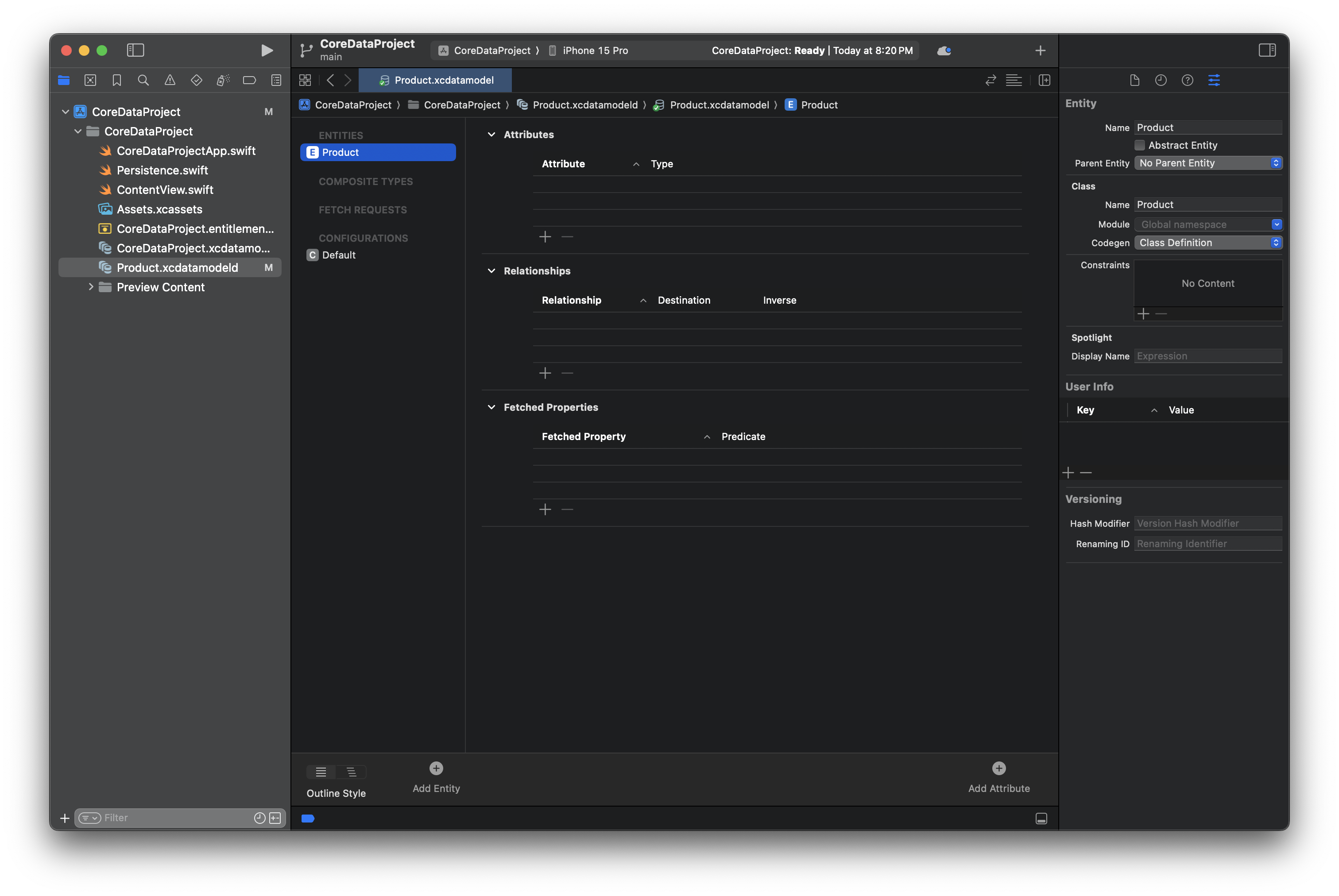 Core Data 프로젝트 생성하기