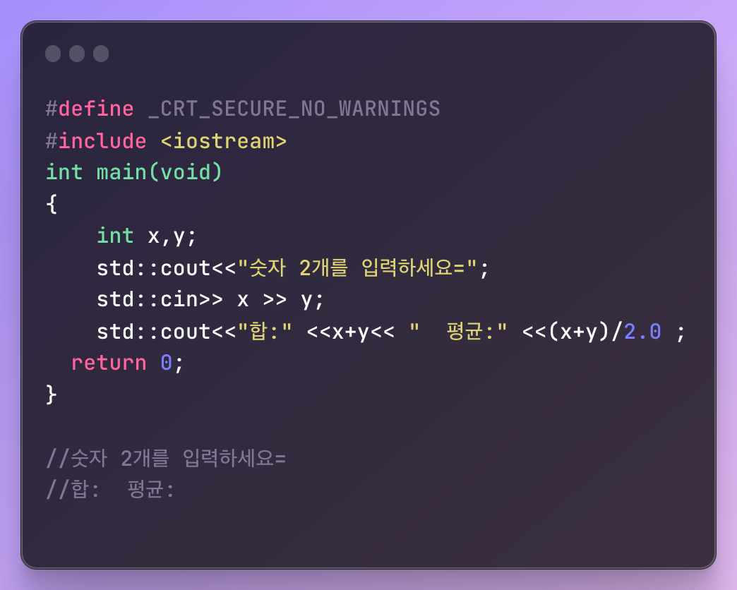 2.3 두 개의 수를 받아서 합과 평균 구하기