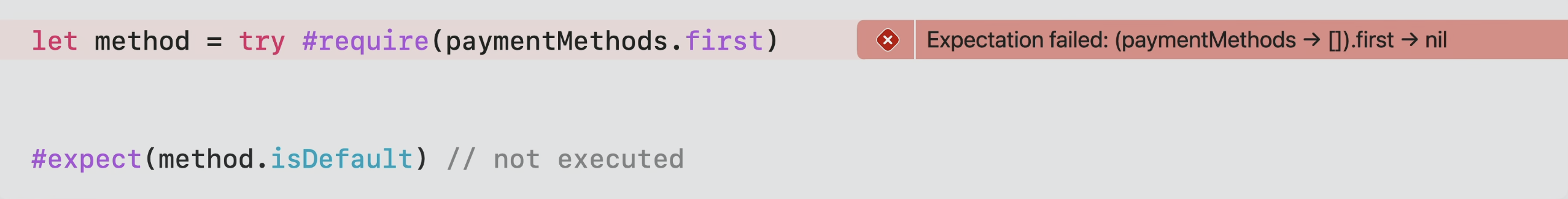 #require 매크로를 사용할 수 있는 또 다른 방법은 선택적 값을 안전하게 언래핑하고 값이 nil인 경우 테스트를 중지하는 것입니다.