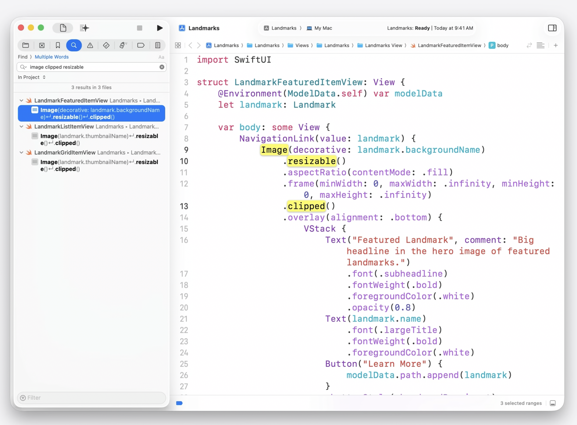 "가장 좋아하는 랜드마크 컬렉션이 어디에 구현되어 있나요?"라고 물으면 관련 파일들을 찾아서 링크까지 제공해줍니다. "@LandmarkCollection에 평점 기능을 추가해주세요"처럼 구체적으로 요청하면 실제로 코드까지 수정해준다고 합니다.