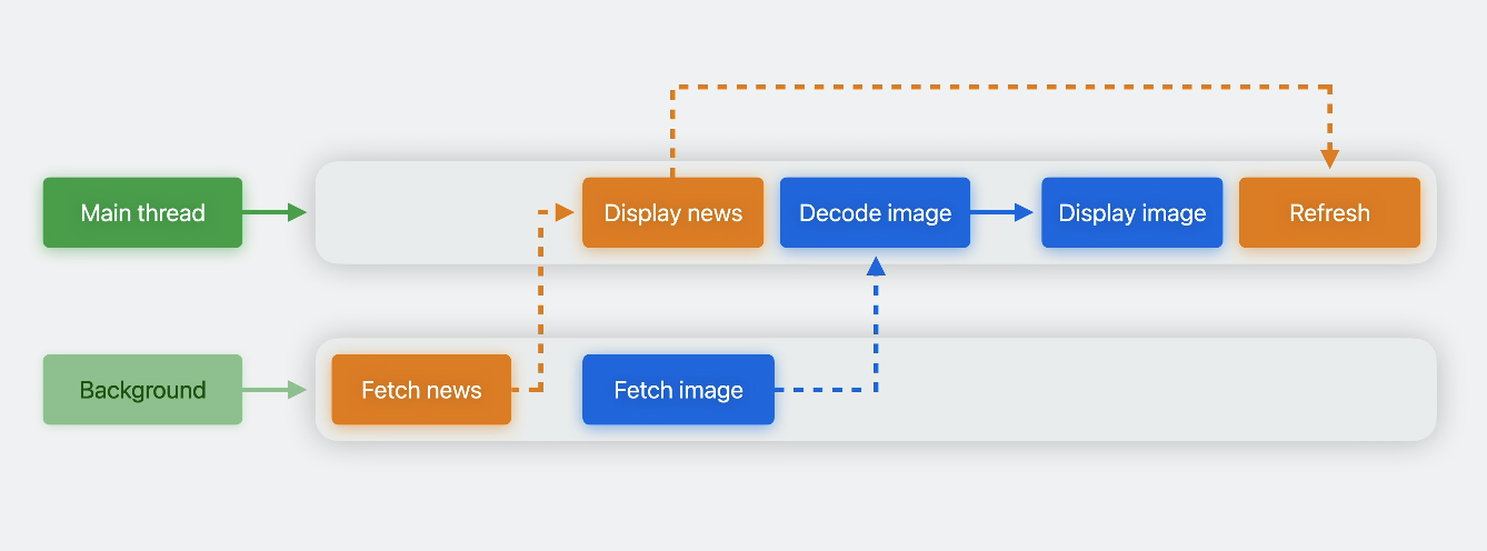 Fetch news전에 Fetch image가 완료되면 메인 스레드는 뉴스를 표시하기 전에 이미지를 디코딩하여 표시합니다.