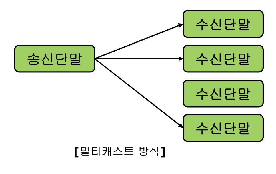- 송신 노드가 하나 이상의 특정 수신 노드에 데이터를 전송하는 일 대 다 방식이다.