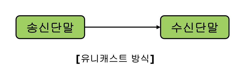 - 송신 노드 하나가 수신 노드 하나에 데이터를 송신하는 방식이다.