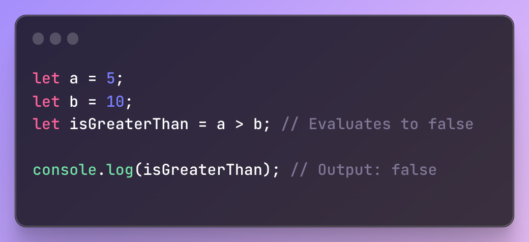 a가 5, b가 10이라고 설정해주었을 때 a > b 의 식은 틀린 식이기 때문에 false를 출력하게 됩니다.