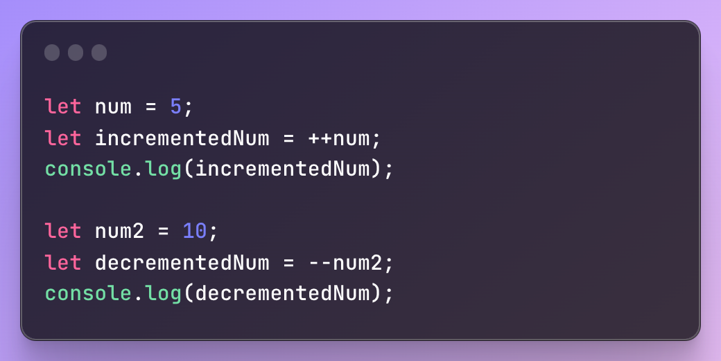 즉, 새 변수에 할당되기 전에 값이 증가하거나 감소합니다.