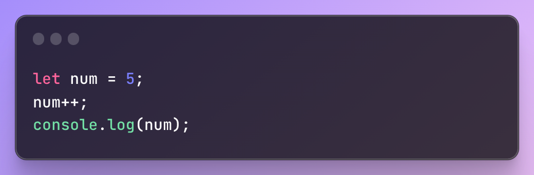 이 예에서 num의 초기값은 5입니다. num++ 문은 num의 값을 1씩 증가시킵니다. 결과적으로 num의 값은 6이 됩니다.