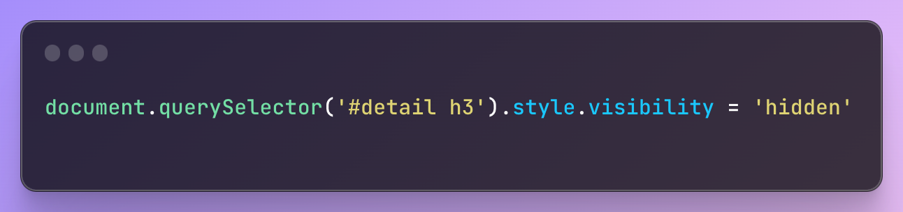 설명 내용도 사라지게 만들고 싶다면 콘솔 창에 아래 소스를 입력하면 됩니다.
