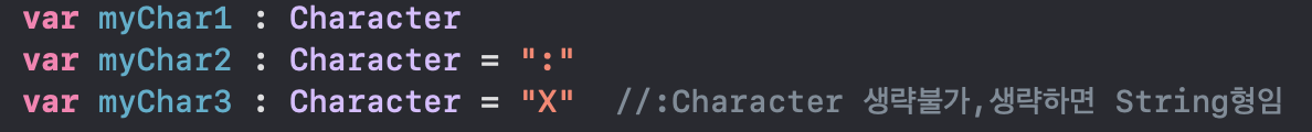 또한 Swift 언어에서는 Double형이 기본이기 때문에 타입을 적지 않는다면 Double형으로 적용되게 됩니다.